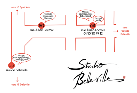 Du 68 au 80 rue Julien Lacroix, ou bien même au 53 rue de Belleville, vous trouverez confort, fluidité et tranquillité pour vos travaux d’enregistrement de voix, de montage, de mixage et de laboratoire.