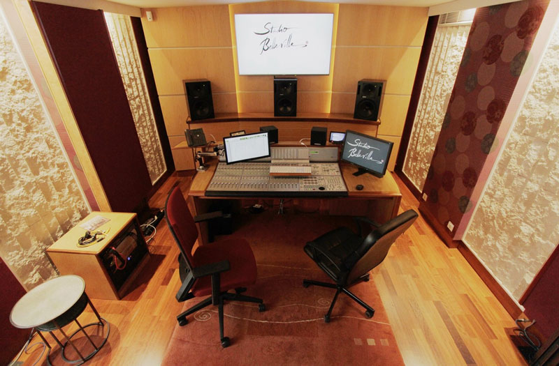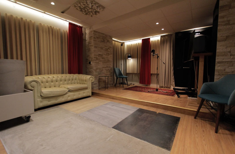 Un mur et une porte acoustique fermant à clé séparent les deux studios.